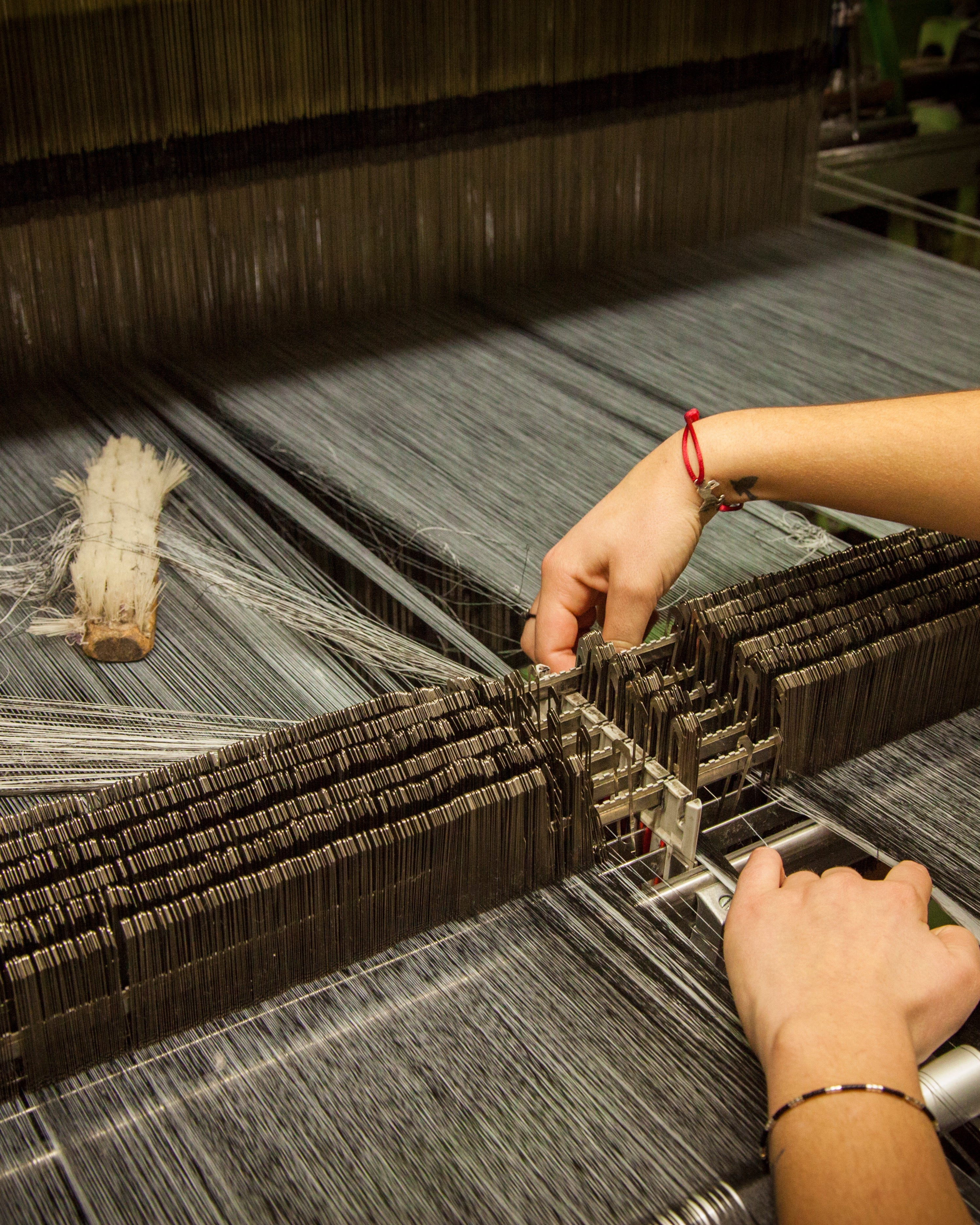 Pour nos écharpes et slings, les fils sont teints avant le tissage, dans l’une des dernières filatures françaises, avant d’être tissés en France.