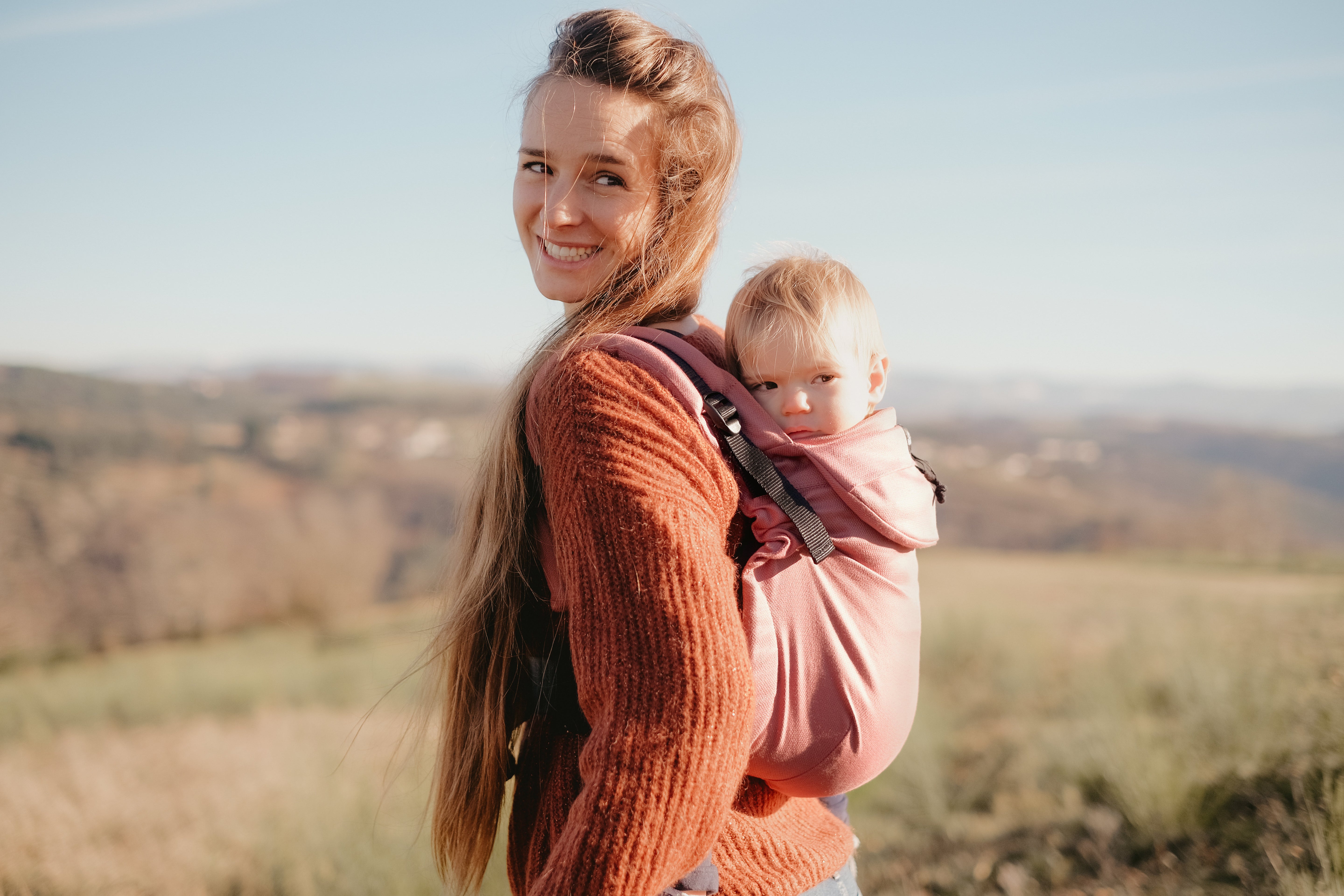 - Confort : le tissu du tablier est le même que celui de nos écharpes tissées pour respecter la position physiologique du bébé